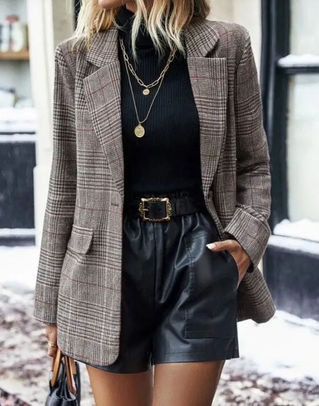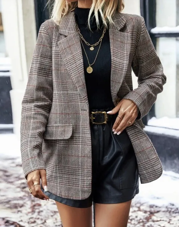 Plaid Lapel Single-Button Blazer – Elegant Vintage Style